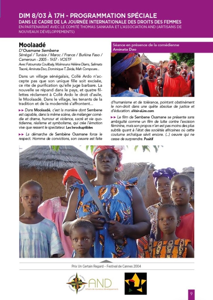 Ce film du réalisateur Sénégalais Ousmane SEMBENE, monument du cinéma Africain, pose la question de l’excision, nous vous invitons à venir débattre de cette importante question avec nous.